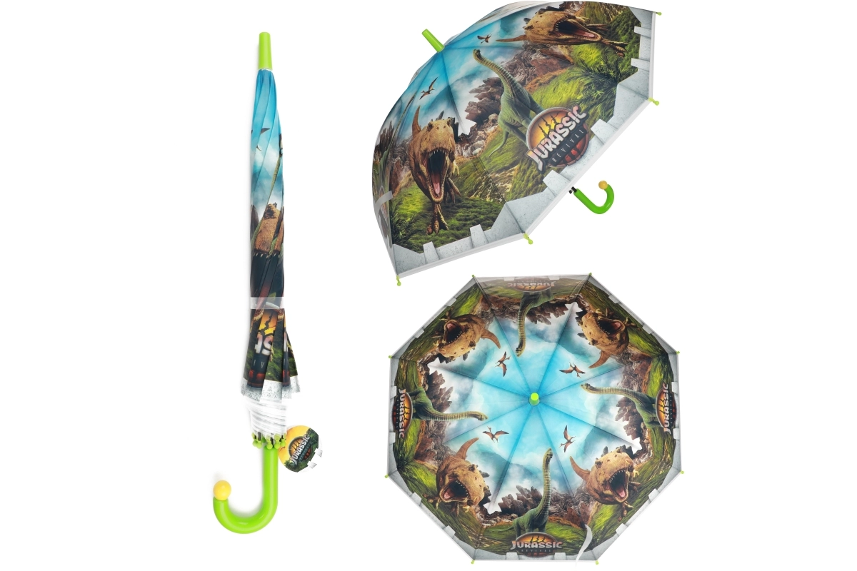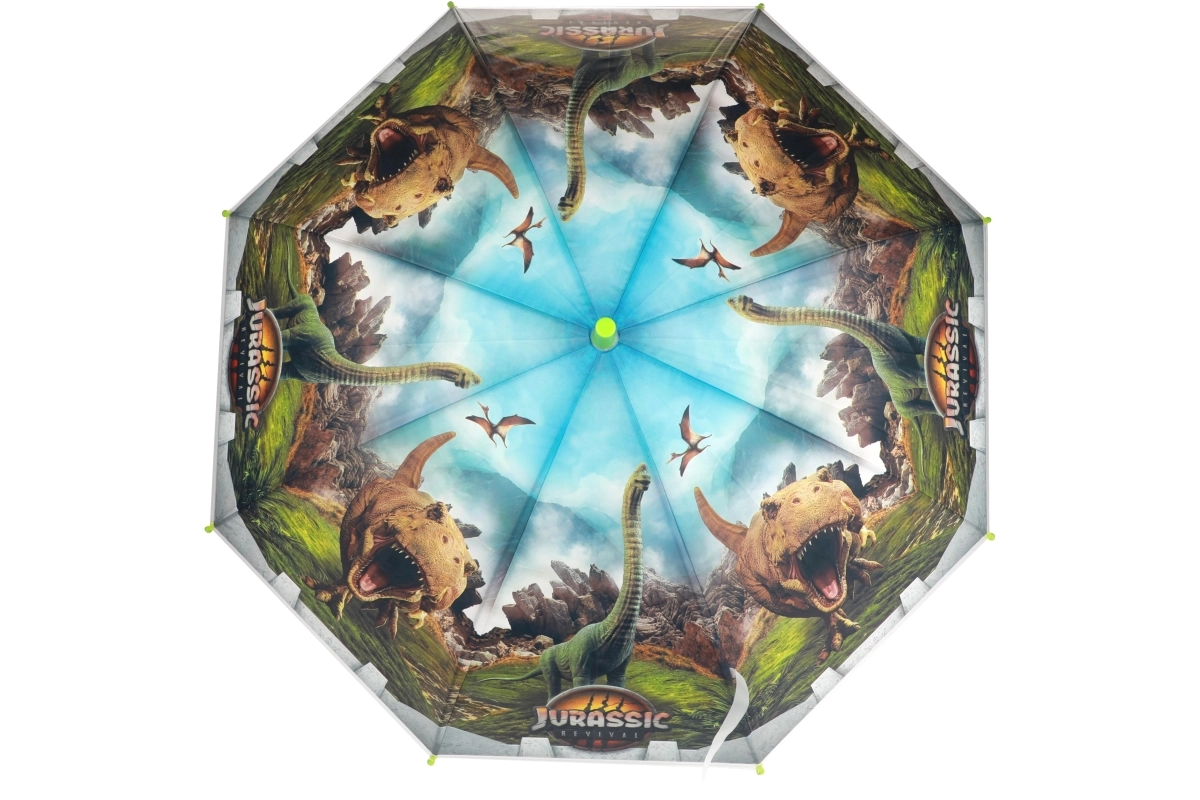 Stilīgs bērnu lietussargs ar Jurassic World un dinozauru motīvu pasargās mazos piedzīvojumu meklētājus no lietus. Tam ir manuāla izšaujamā atvēršana, izturīga konstrukcija ar metāla stieplēm un droši noapaļoti uzgaļi. Pateicoties 80 cm platumam un ergonomiskam, ieliektam rokturim, to ir ērti turēt un tas droši pasargā no nelabvēlīgiem laikapstākļiem.