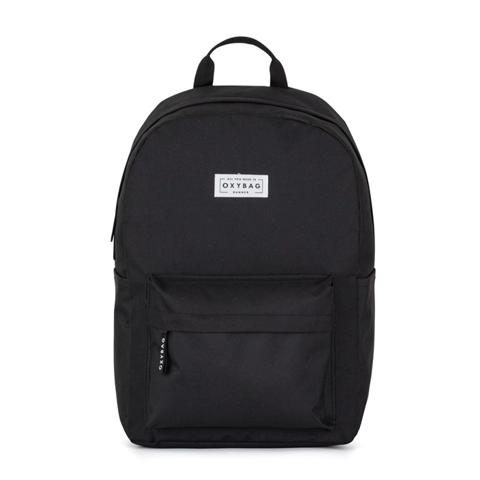 Stilīgā mugursoma OXY Runner Black izceļas ar tīru dizainu un funkcionālu izpildījumu. Galvenais ietilpīgais nodalījums droši ievietos mācību grāmatas, burtnīcas un penāli, savukārt mazā priekšējā kabatiņa ir ideāla atslēgām, maciņam vai nelielai uzkodai. Polsterētās un regulējamās plecu lences kopā ar ērtu muguras paneli (garums 44 cm) nodrošina komfortu arī ilgstošas nēsāšanas laikā.