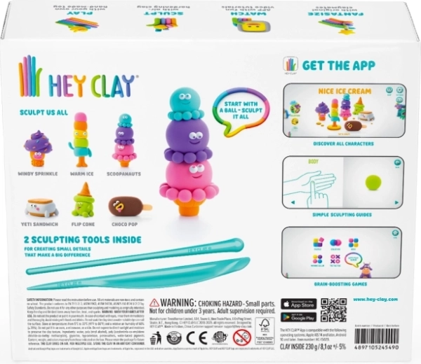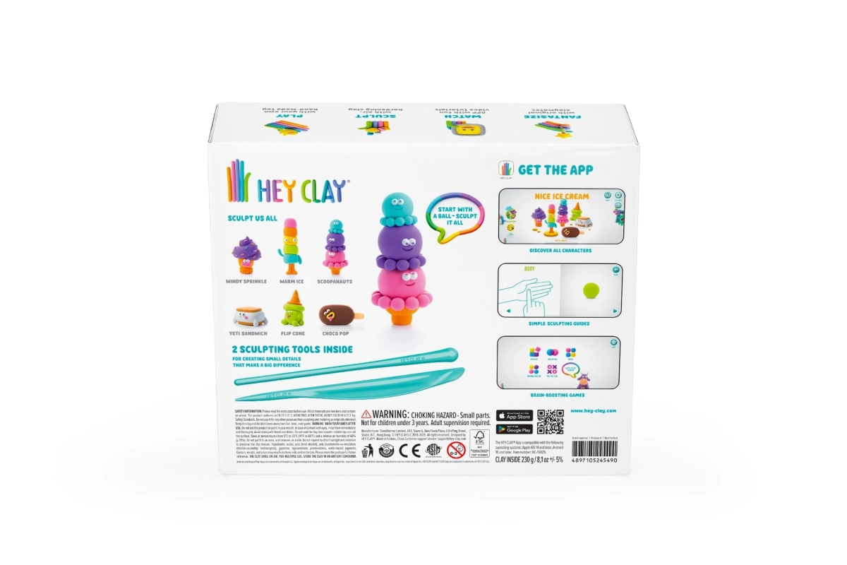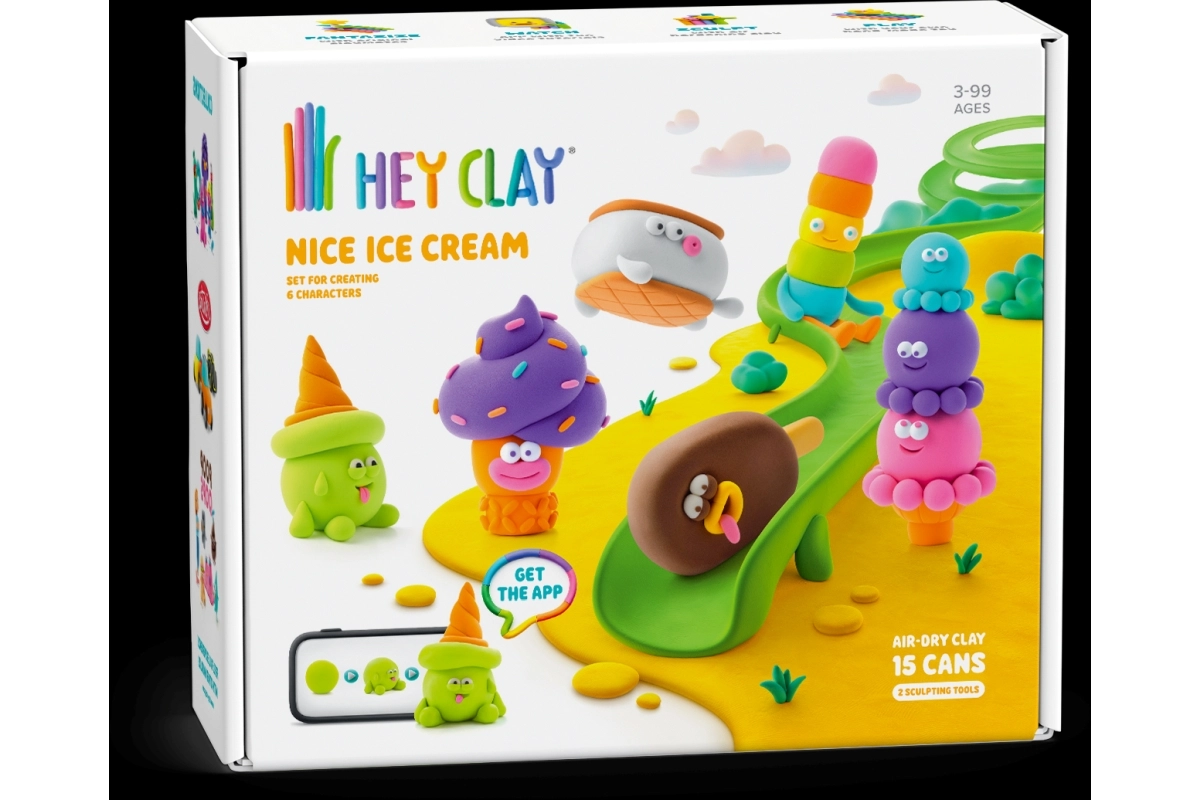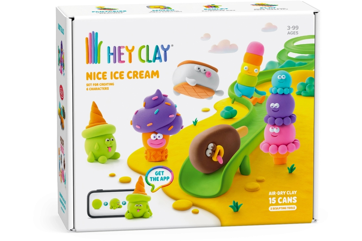 Interaktīvā HEY CLAY lietotne bērniem rāda vienkāršas 3D instrukcijas – no pamatformām līdz gatavām saldējuma figūriņām. Piemērota gan patstāvīgai, gan kopīgai veidošanai.