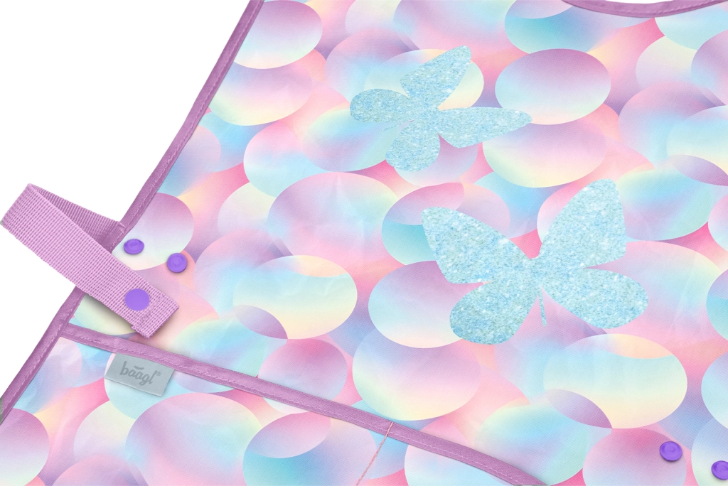 Dodiet bērniem brīvību radošajām nodarbēm bez rūpēm par traipiem. Bērnu priekšauts BAAGL Candy ar maigu pastelveida rakstu un tauriņiem ir ideāli piemērots vizuālajai mākslai, darba mācībai un mājas radošajiem darbiem. Izturīgo, gludo virsmu ir viegli noslaucīt, un tā ātri izžūst, lai jau pēc brīža atkal būtu gatava lietošanai.
