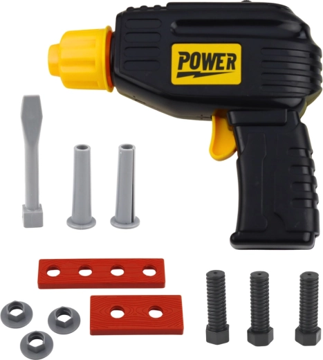 Bērnu urbjmašīna ar 2× AA barošanu (nav iekļautas komplektā) imitē skrūvēšanu un motivē bērnus radošai spēlei un sīkās motorikas treniņam.