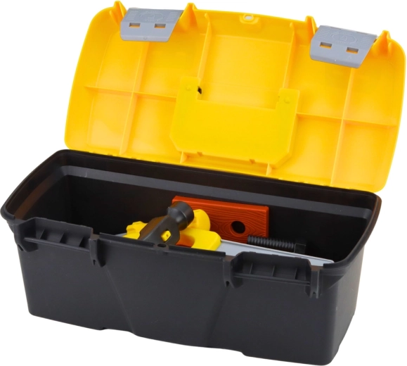 Stingrs konteiners ar vāku un aizdares mehānismiem uztur instrumentus pārskatāmi sakārtotus, māca bērniem kārtību un atvieglo pārnēsāšanu.