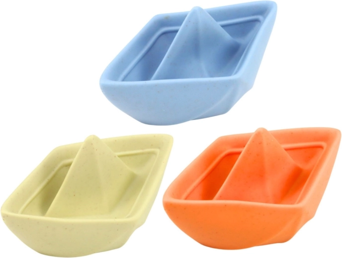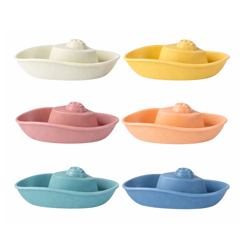 Sešas vieglas plastmasas laiviņas maigās krāsās stabili peld uz virsmas un ir ideālas lējiena treniņam, dzīvnieciņu pārvadāšanai un iztēles spēlēm.