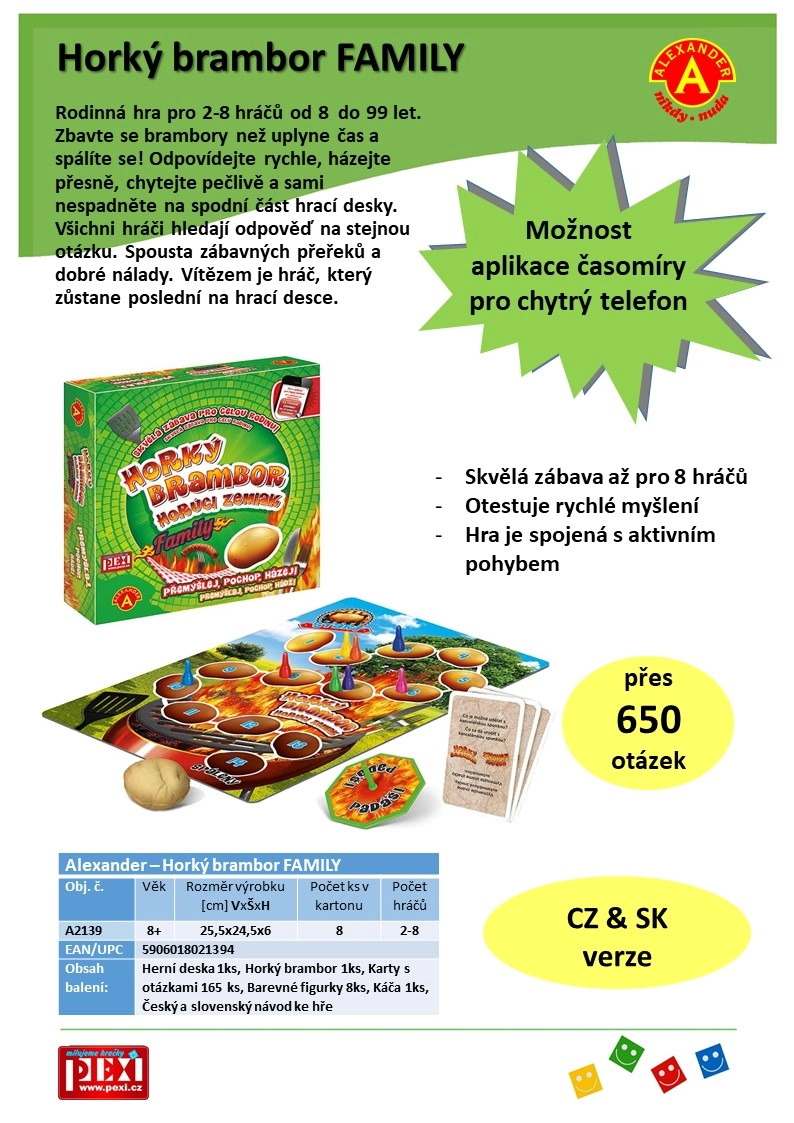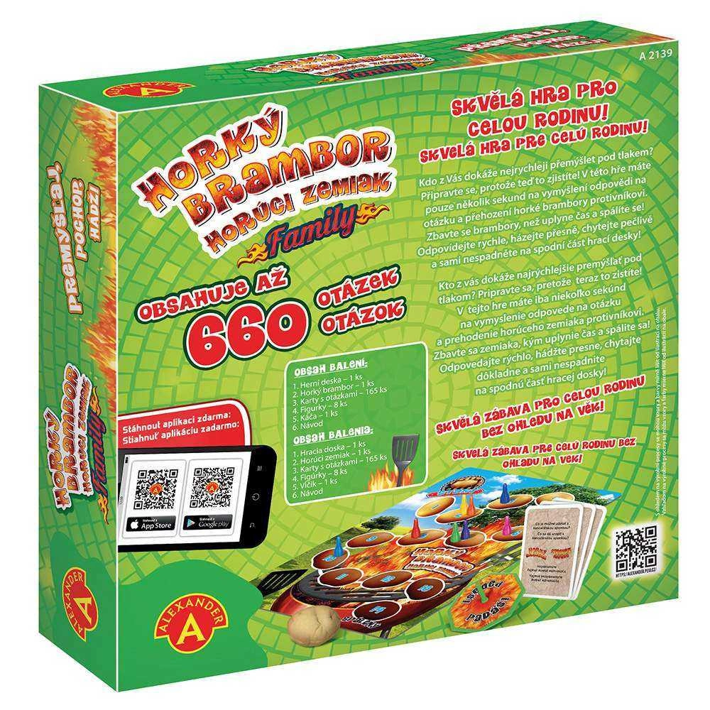 Izbaudiet lielisku ģimenes izklaidi ar vienkāršiem noteikumiem! Spēle Karstā Kartupelis paredzēta 2–8 spēlētājiem no 8 līdz 99 gadiem. Atbildiet ātri, metiet precīzi un atbrīvojieties no kartupeļa, pirms beidzas laiks!