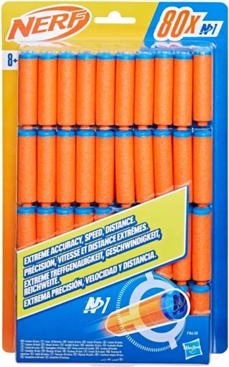 Komplekts ar 80 gab. uzturēs jūsu magazīnas pilnas intensīvu apšaudžu, mērķēšanas treniņu un komandu spēļu laikā. Standardizētie izmēri nodrošina saderību ar N1 sistēmām, tāpēc bultas viegli lietojamas ar atbilstošiem NERF šāvējiem.