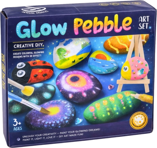 Šis daudzpusīgais komplekts piedāvā visu, kas bērniem nepieciešams gludu akmeņu krāsošanai un dekorēšanai – no akrila krāsām līdz otām un sūklīšiem, kā arī spīdīgiem aksesuāriem. Pēc apgaismošanas radītie darbi, pateicoties fosforescējošām krāsām, maigi iemirdzas un pārtop maģiskā bērnistabas dekorā.