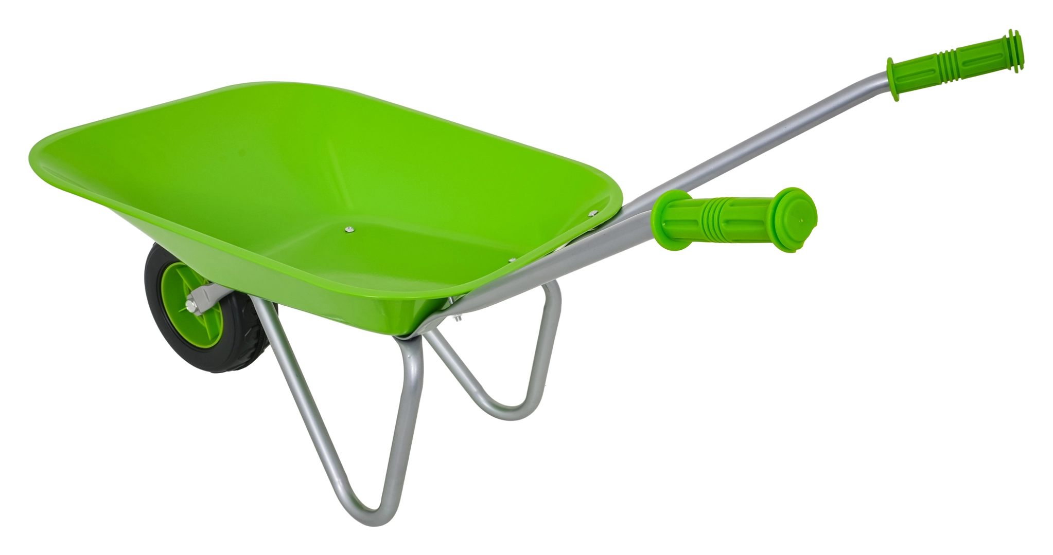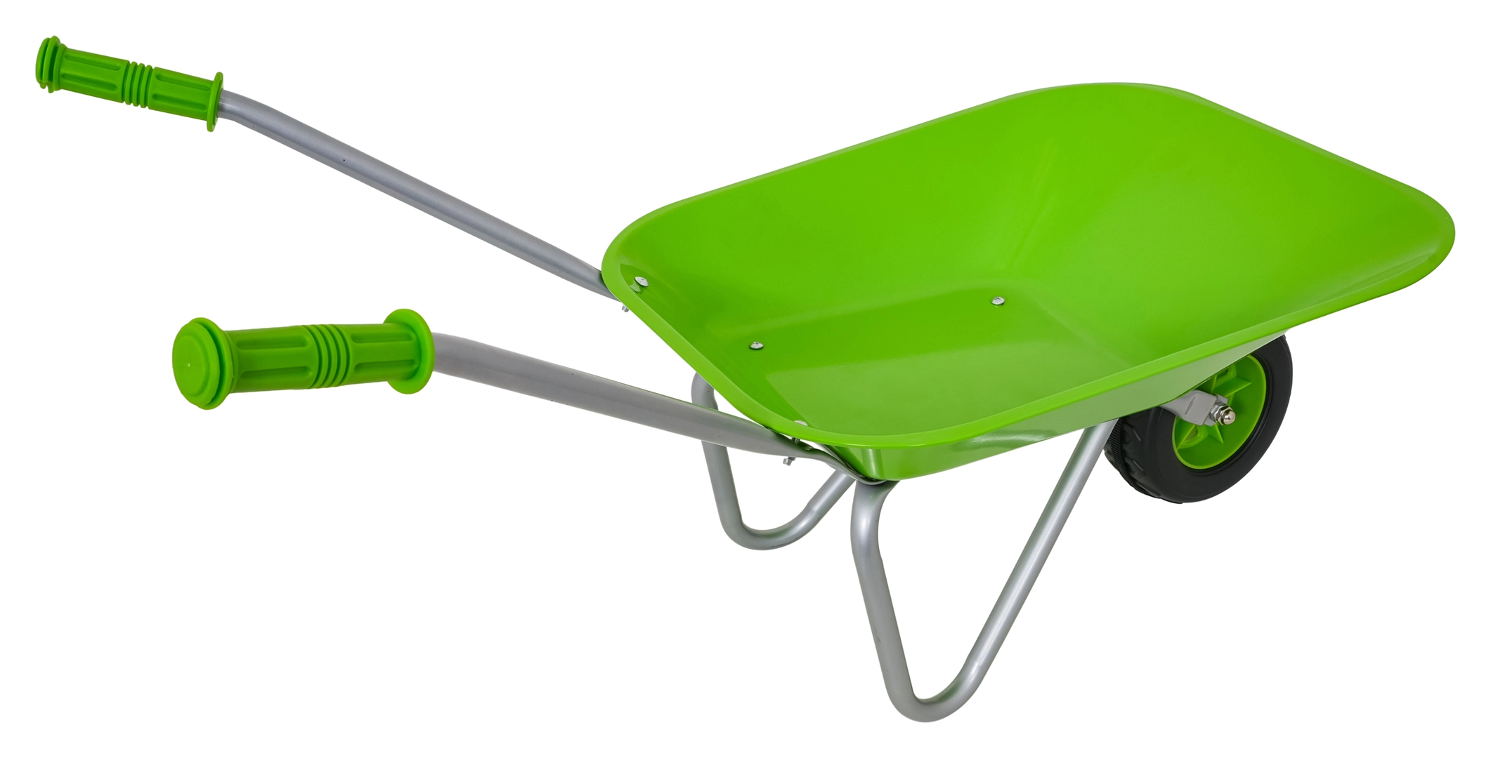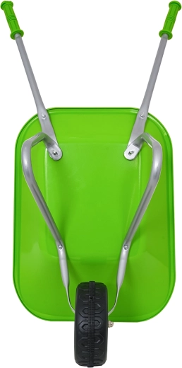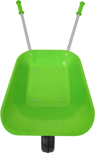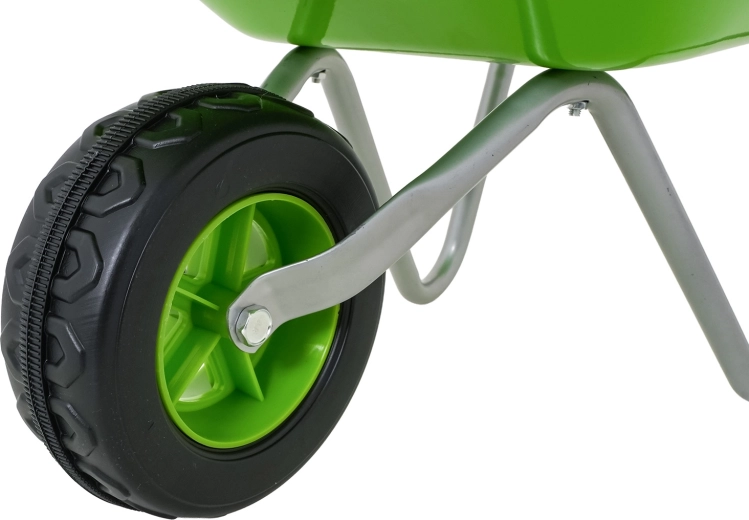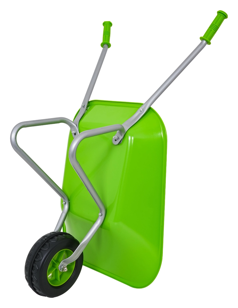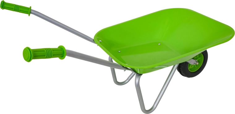 Vieglā un stabilā bērnu ķerra ar platu vanniņu un vienu riteni tiek galā ar augsni, lapām un sīkiem rīkiem. Ergonomiski rokturi ar neslīdošiem pārklājumiem atvieglo vadību.