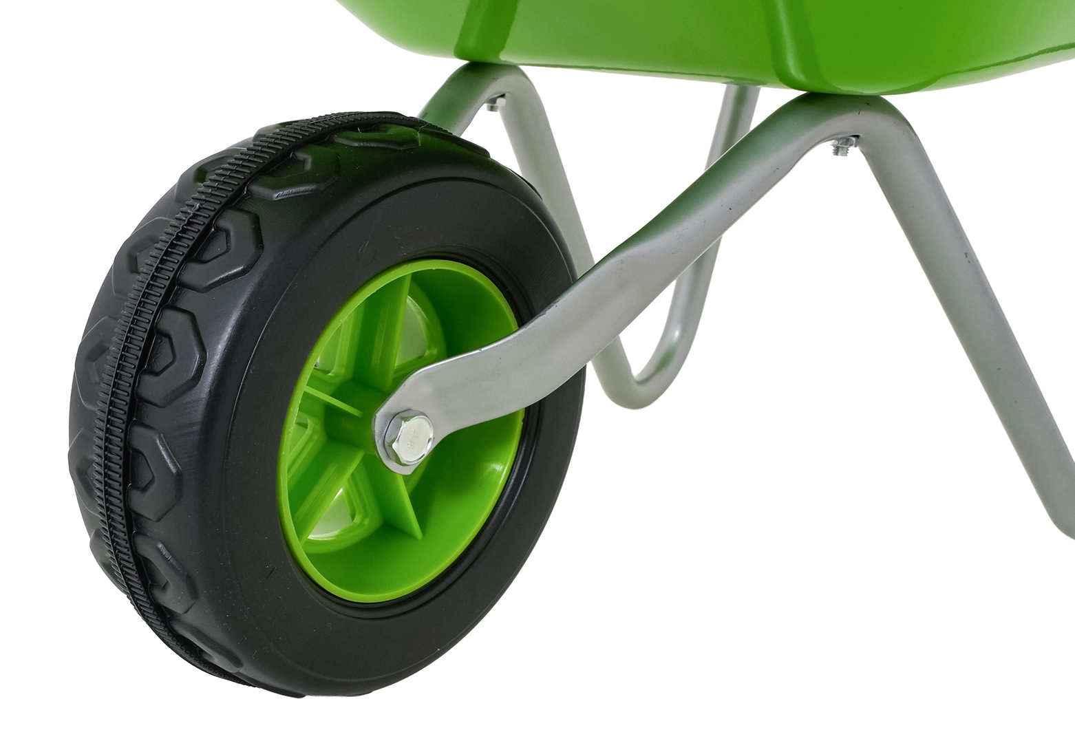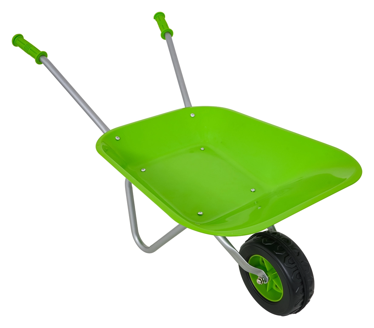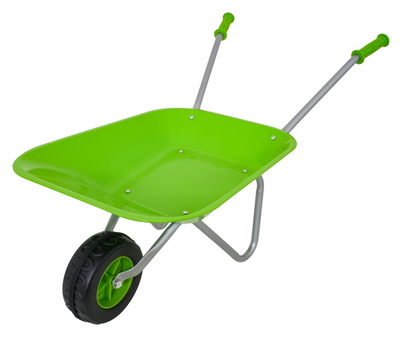 Vieglā un stabilā bērnu ķerra ar platu vanniņu un vienu riteni tiek galā ar augsni, lapām un sīkiem rīkiem. Ergonomiski rokturi ar neslīdošiem pārklājumiem atvieglo vadību.