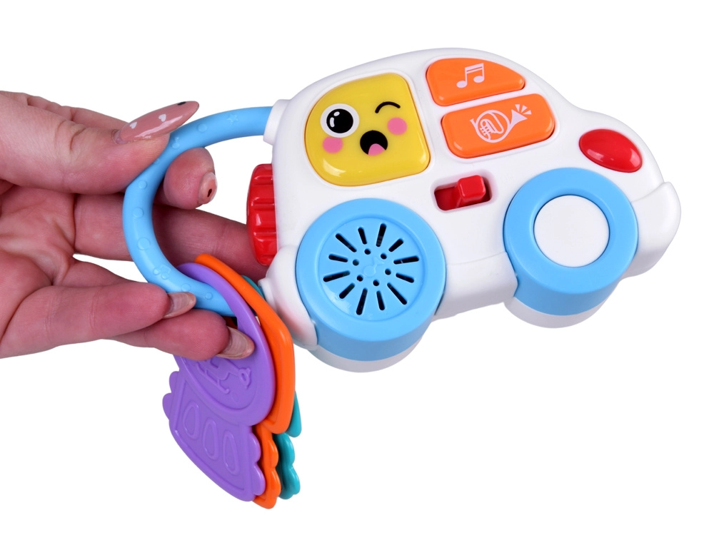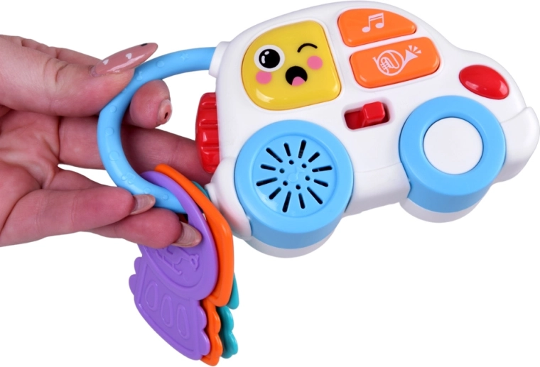 Mazā mašīnīte ar savām gaismām un skaņām ir izņemama un piemērota spēlei arī atsevišķi. Teksturētās atslēgas lieliski ieguļ plaukstiņās un aicina satvert.