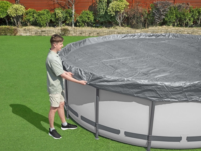 Uzturiet ūdeni baseinā tīrāku ilgāku laiku. Premium klases BESTWAY pārsegplēve ar 4,57 m diametru ir paredzēta apaļiem virszemes baseiniem un apvieno stiprību, UV izturību un uzticamu fiksāciju. Integrētās drenāžas atveres novērš peļķu veidošanos uz virsmas un atvieglo ikdienas lietošanu.