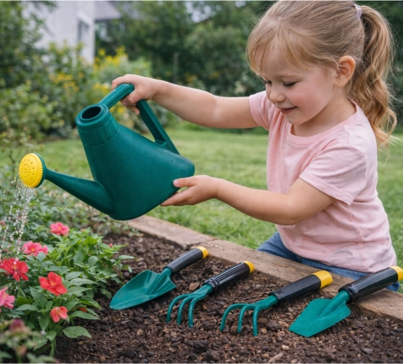 Bērnu plastmasas lejkanna ar noņemamu smidzinātāju nodrošina maigu ūdens izkliedi – ideāli dēstiem un ziediem. Vienkārša uzpilde un ērta satveršana veicina patstāvību augu kopšanā.