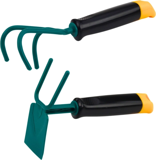Łāpstiņa, grābeklis un kultivators ar izturīgām darba daļām un neslīdošiem uzgaļiem palīdz bērniem droši rakt, irdināt un ravēt. Paredzēti ērtam satvērienam un labākai kontrolei.
