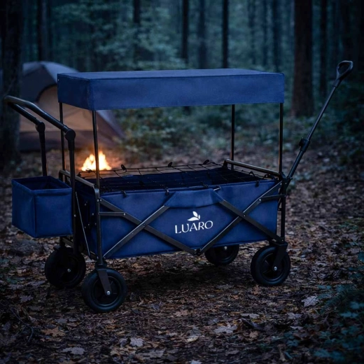 Ar LUARO ratiņiem iegūsiet uzticamu palīgu ģimenes izbraucieniem, pludmales dienām un kempingam. Izturīgais tērauda rāmis un noturīgais Oxford 600D audums nodrošina stabilitāti un ilgu kalpošanas laiku, savukārt lielie bezceļa riteņi tiek galā ar smiltīm, zāli un bruģi. Ratiņus var vilkt vai stumt, un pateicoties augstumā regulējamiem rokturiem tie ērti pielāgojas jūsu augumam.