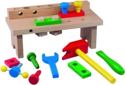 Koka darba galds ar instrumentiem Detoa ir lielisks pamats mazajiem meistariem. Bērni apgūst pamatprasmes darbam ar instrumentiem, trenē roku un acu koordināciju un attīsta loģisko domāšanu, skrūvējot un montējot.