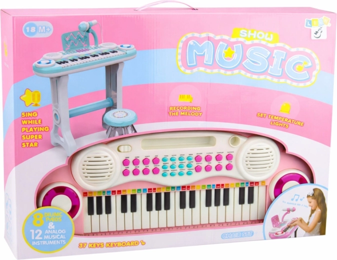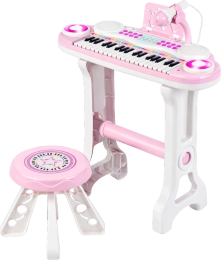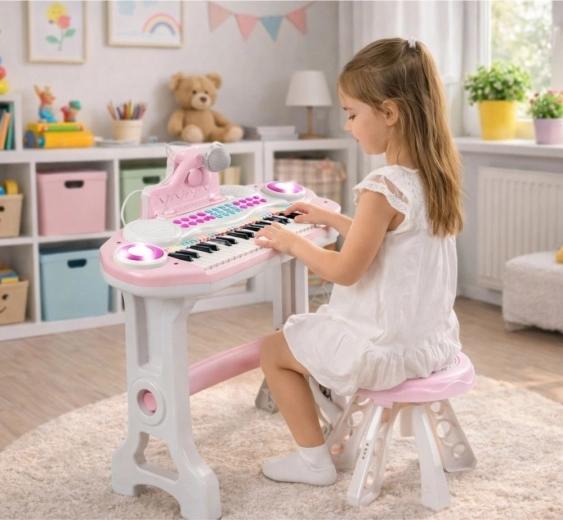 Attīstiet bērna muzikālo talantu ar rozā elektroniskajām klavierēm ar 37 taustiņiem, mikrofonu un MP3 funkciju. Tās piedāvā jautrus ritmus, dažādus instrumentus, ierakstīšanu un atskaņošanu, tempa un skaļuma regulēšanu un LED gaismas efektus. Komplektā ir galds, taburete un notu turētājs ērtai spēlēšanai.