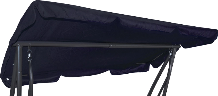 Atjaunojiet savas dārza šūpoles ar izturīgu rezerves jumtu no 180 g/m² poliestera. Materiāls ir stingrs, krāsnoturīgs un veidots tā, lai nodrošinātu uzticamu ēnu un aizsardzību pret UV starojumu un vieglu lietu. Tumši zilais tonis viegli saskaņojas ar lielāko daļu dārza mēbeļu.