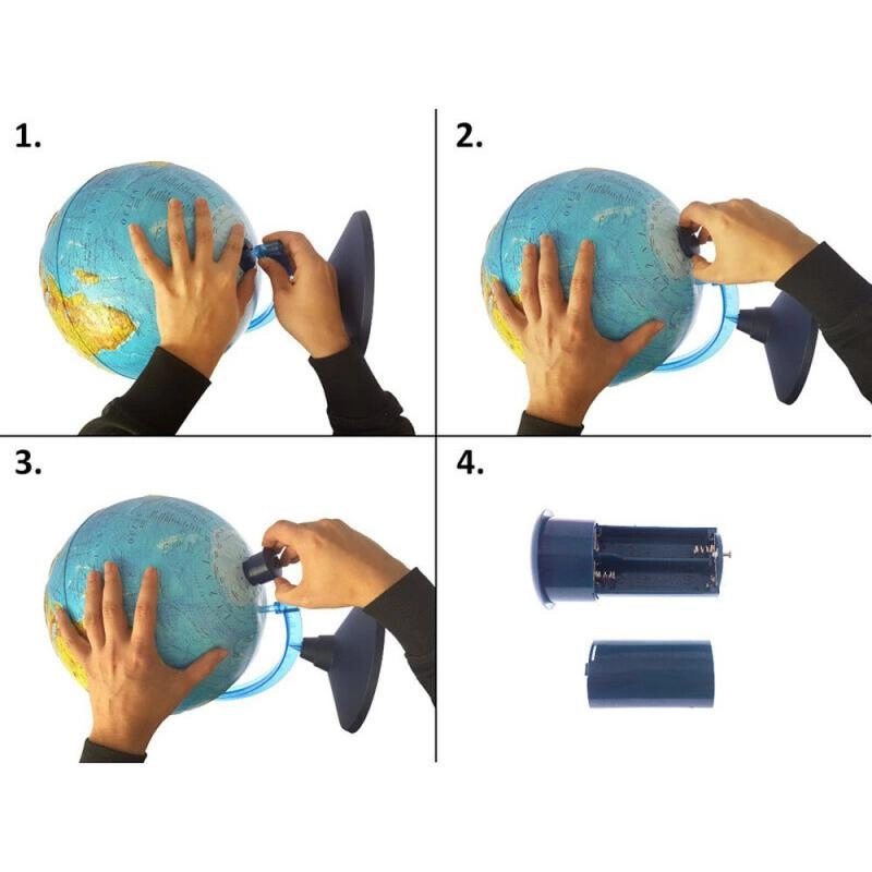 Iebūvētais LED apgaismojums, ievietojams no apakšas, pārvērš globusu iespaidīgā nakts kartē – ideāli vakara mācībām un kā istabas dekors.
