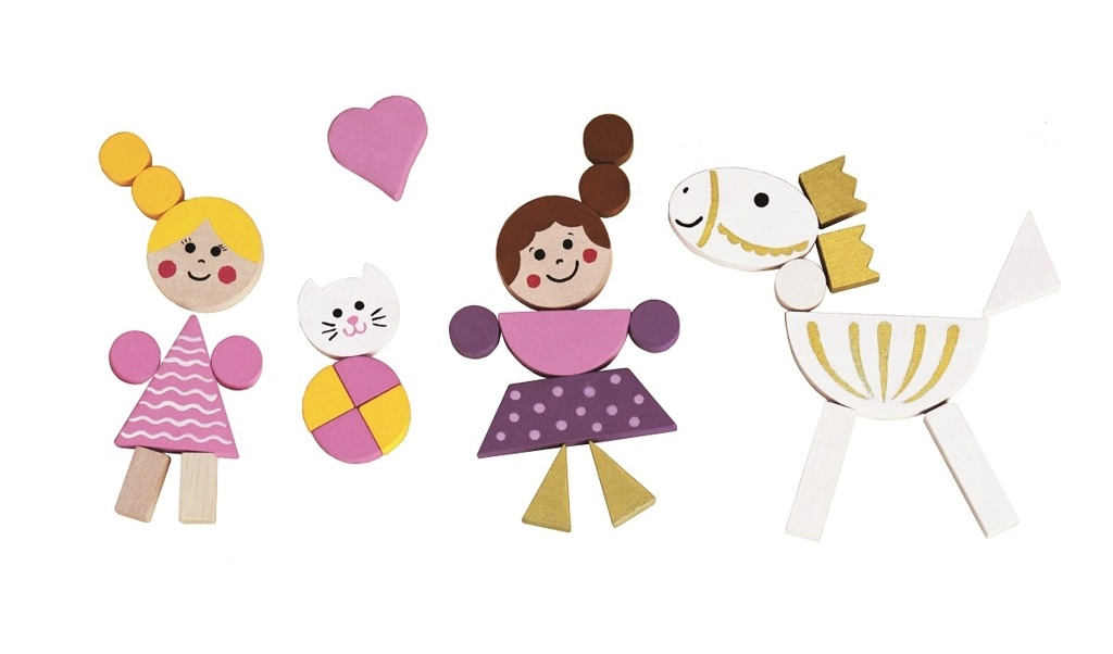 Krāsainos koka gabaliņus ar magnētu var viegli salikt tēlos, dzīvniekos un pilīs. Bērni izveidos savas pasakas un ainas tieši pēc savas fantāzijas.