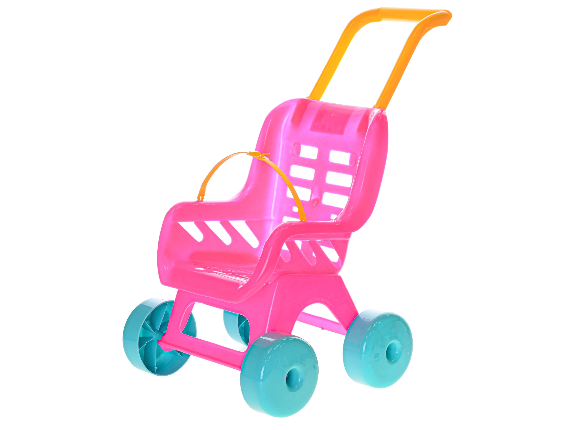 Kvalitatīvā plastmasas konstrukcija ir stingra un vienlaikus viegla – bērni ratiņus viegli vadīs un pēc spēles ātri notīrīs.