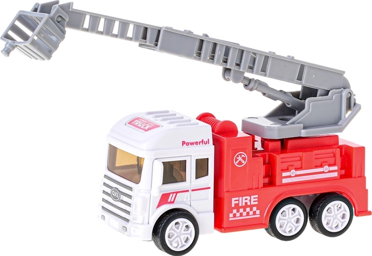 Iepakojumā atradīsiet 3 veidu transportlīdzekļu miksu – ar platformu, kāpnēm un šļūteni – ideāli piemērots dažādu spēles scenāriju veidošanai. Inerces mehānisms nodrošina vienmērīgu braukšanu bez baterijām, tāpēc spēlēšanās ir droša un bezrūpīga.