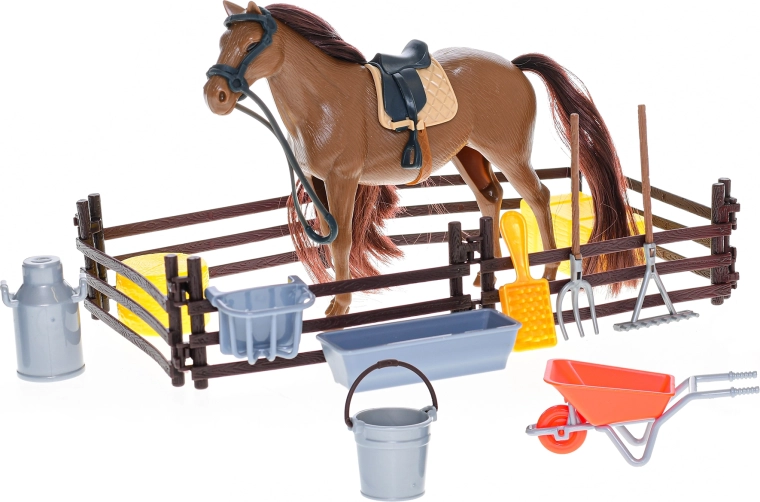Komplekts veicina kreativitāti, lomspēles un sīkās motorikas attīstību. Pateicoties iekļautajiem piederumiem, ir viegli veidot savas ainas no staļļa vai saimniecības. Praktiskais iepakojums kastītē atvieglo uzglabāšanu un kārtības uzturēšanu.