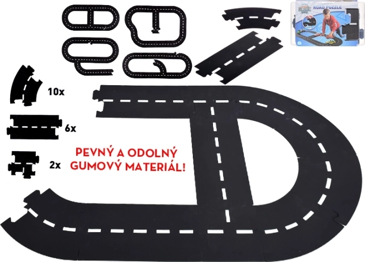 - Radoša būvēšana: 18 viegli savienojamas detaļas bezgalīgām trases variācijām.