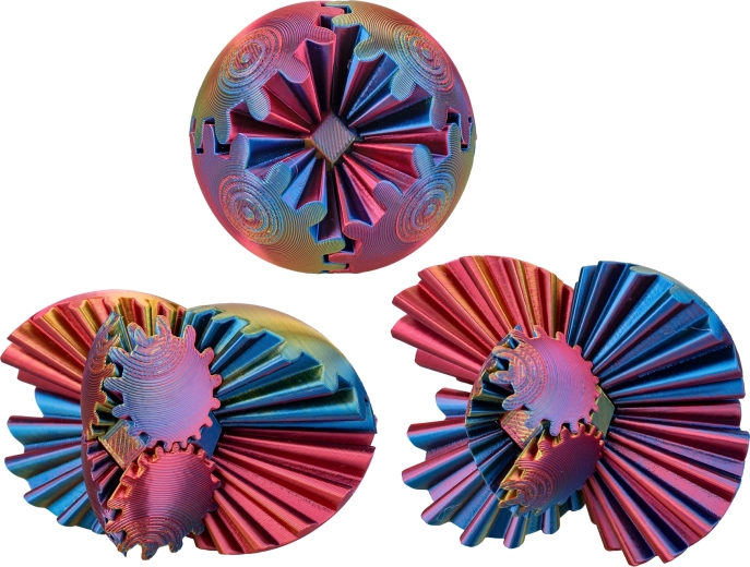 Šis gudrais galvaslauzis apvieno antistresa palīglīdzekli ar loģisku izaicinājumu. Unikālais fraktāļu dizains ar zobratiem nodrošina plūstošas un nepārtraukti jaunas kustības, kas izklaidēs mājās, birojā un ceļā. Divkrāsu izpildījums (zilzaļš vai zilviolets) ir ne tikai pievilcīgs, bet arī palīdz orientēties salikšanas laikā.