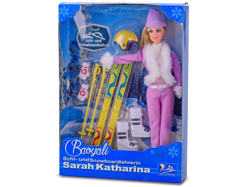 Iepakojumā ir viss nepieciešamais slēpošanas piedzīvojumiem: slēpes, nūjas, slēpošanas ķivere, cepure, cimdi un slēpošanas zābaki. Lelle ir pieejama divās modes krāsās – rozā un violetā. Brīdinājums: pasūtot konkrētu krāsu izvēlēties nav iespējams.