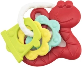 Vieglā un ergonomiskā forma ir ērti satverama mazām rociņām. Kontrastējošās krāsas veicina redzes attīstību, bet patīkamā grabēšana motivē aktīvai izpētei. Produkts tiek piegādāts dažādās krāsu variācijās un motīvos – konkrētu tipu iepriekš izvēlēties nav iespējams.