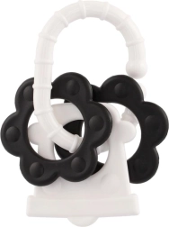 Atklājiet košļājamās rotaļlietas, kas īpaši izstrādātas pašiem mazākajiem – kontrastējošais melnbaltais dizains piesaista mazuļa uzmanību un palīdz stimulēt vizuālo uztveri. Pateicoties ērtajam rokturim, rotaļlietu ir viegli noturēt mazajās rociņās, bet grabulītis nodrošina maigu skaņas stimulāciju.