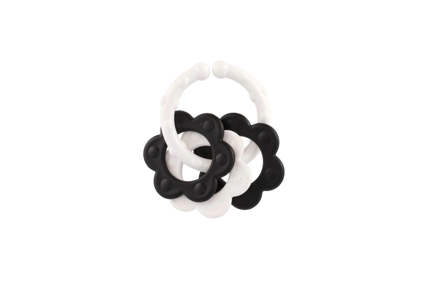 Praktiskas melnbaltas košļājamās rotaļlietas 4 formās ar integrētu grabulīti un ērtu rokturi veicina redzes attīstību un sīko motoriku jau no dzimšanas. Izgatavotas no veselībai nekaitīgiem materiāliem, drošas ikdienas lietošanai.