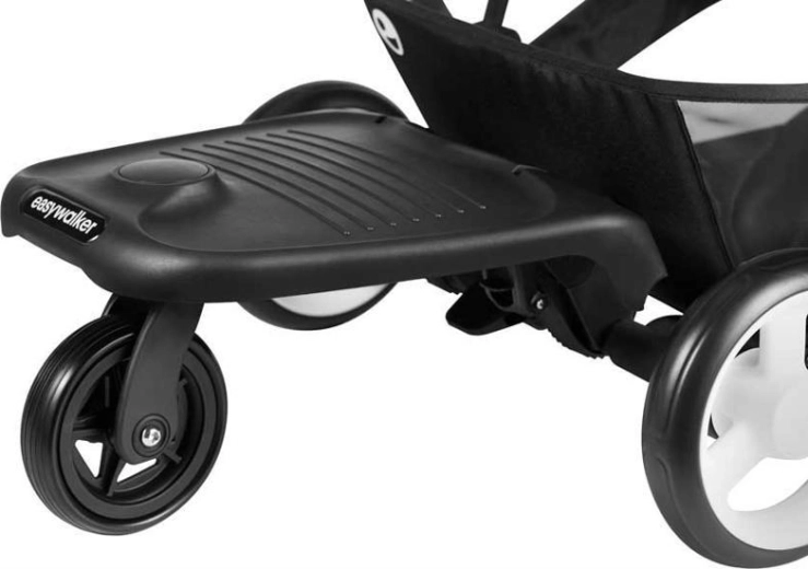Easywalker Easyboard ir gudrs risinājums ģimenēm ar vairākiem bērniem. Vecākais bērns var ērti braukt aiz ratiem uz stabilas platformas ar pretizslīdes virsmu, kamēr jaunākais ērti atpūšas ratiņos. Pateicoties vienam lielākam pagriežamam ritenim, brauciens ir vienmērīgs, un ar ratiem ir viegli manevrēt pat rosīgās ielās.