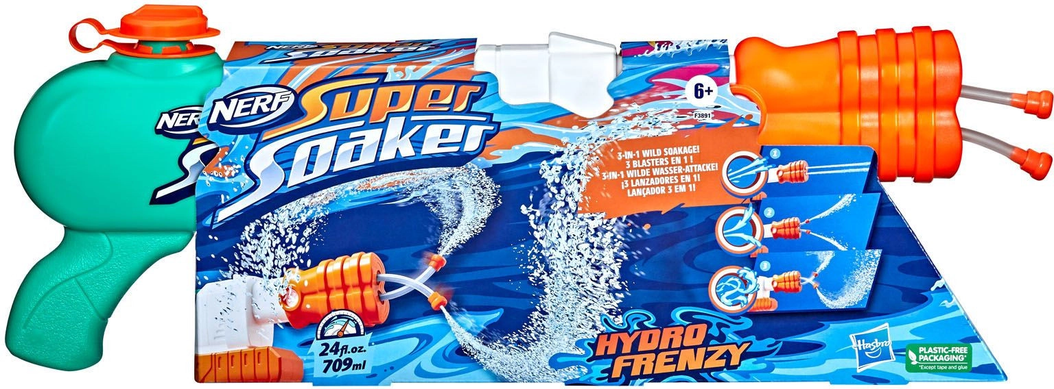 Ūdens blāsteris NERF Super Soaker Hydro Frenzy ir veidots ātrām un atsvaidzinošām ūdens cīņām. Kompaktie izmēri atvieglo lietošanu, bet pumpēšanas mehānisms nodrošina stabilu strūklu, kas droši samērcēs pretiniekus. Ideāli piemērots vasaras dienām, kad vajag gan atvēsināšanos, gan izklaidi vienlaikus.