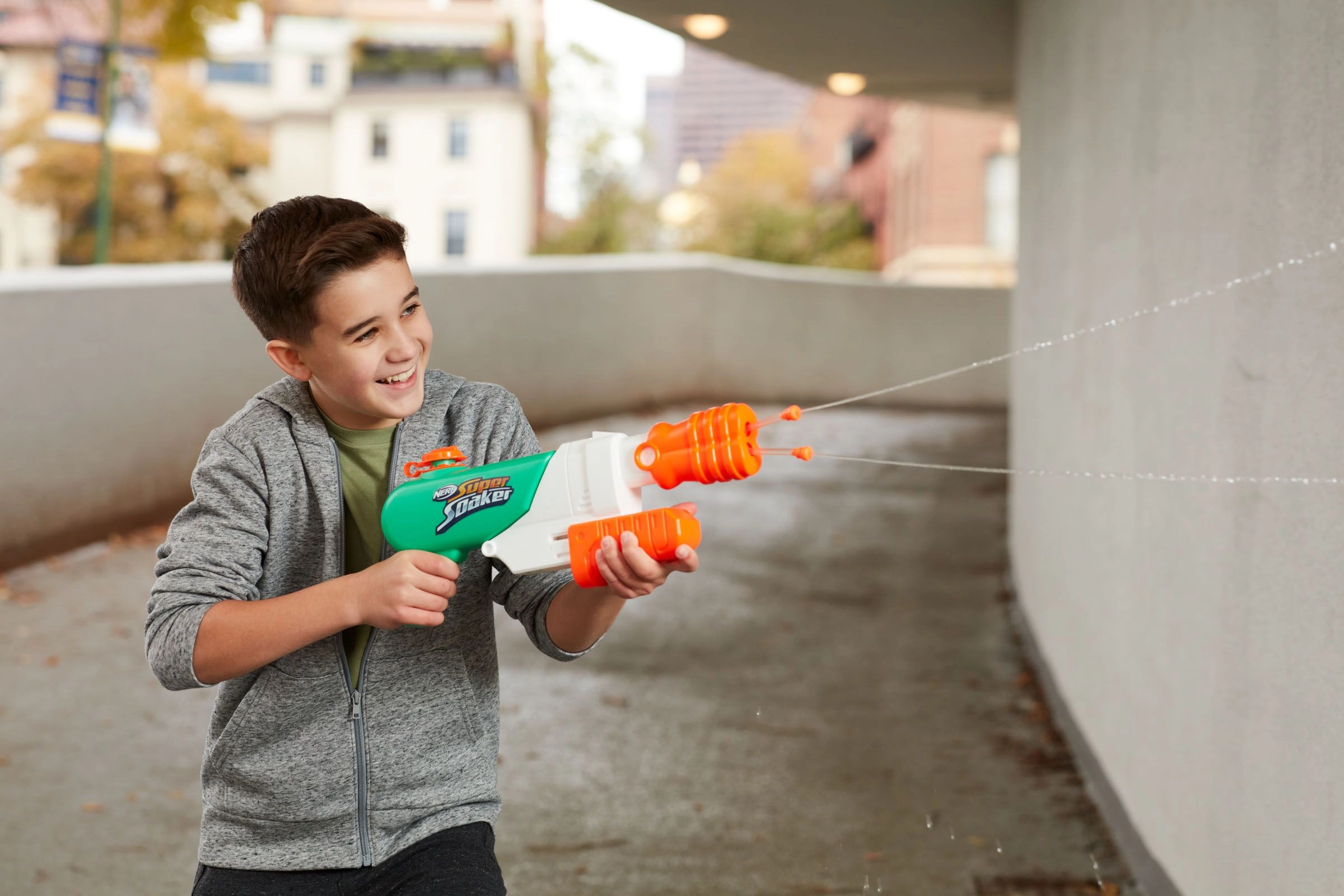 Izbaudiet vasaru, kas pilna ar aizrautību, ar ūdens pistoli NERF Super Soaker Hydro Frenzy no Hasbro. Pateicoties vieglai pumpēšanai, nepārtrauktai ūdens strūklai un izturīgai konstrukcijai, bērni no 6 gadu vecuma gūs nebeidzamu jautrību dārzā, pie baseina un pludmalē.