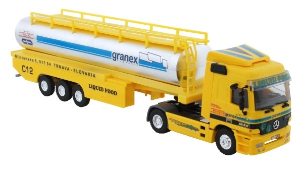 Modelis uzticami attēlo cisternas kravas auto Mercedes‑Benz Actros Liquid Food mērogā 1:48. Saliktais kravas auto priecēs ar pārdomātām detaļām un stabilu konstrukciju, kas ir ideāli piemērota gan izstādīšanai, gan vieglai spēlei.