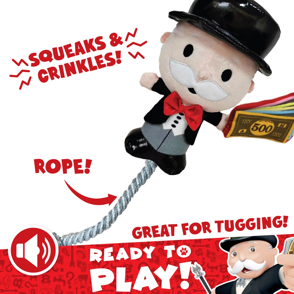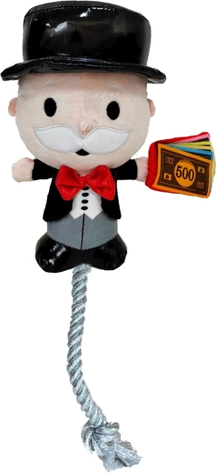 Jautra un izturīga pūku rotaļlieta suņiem ar MONOPOLY motīvu piedāvā interaktīvas izklaides gan maziem, gan vidējiem un lielākiem suņiem. Varonis Mr. Monopoly apvieno mīkstu plīšu mīļošanās brīžiem un izturīgu virvi pievilkšanās spēlēm. Iebūvēts pīkstulis un čaboši elementi stimulē maņas un veicina aktīvu rotaļu, savukārt kompaktie 20 cm ir lieliski piemēroti mešanai, nešanai un kopīgai dauzīšanai.