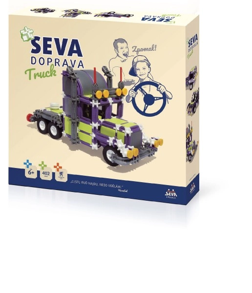 SEVA Doprava Truck konstruktoru komplekts ir ideāls bērniem, kuri vēlas attīstīt savu fantāziju un veiklību. Komplektā ir 402 detaļas, kas ļauj salikt dažādu veidu transportlīdzekļus, piemēram, vilcējus, bagijus un mazākus kravas auto. Bērni var spēlēties par kravas auto vadītājiem un doties ceļā, kur vien vēlas.