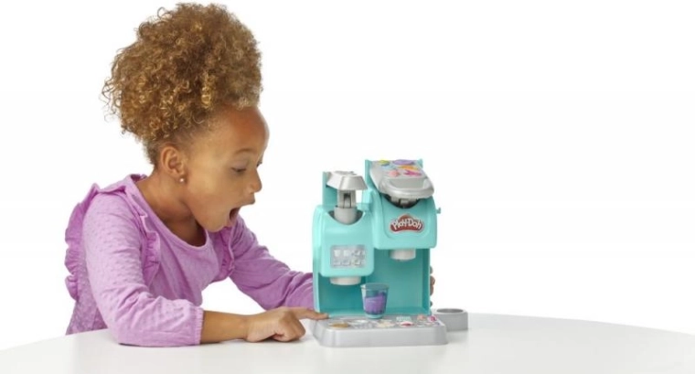 Pārvērtiet bērnu stūrīti kafejnīcā ar Play-Doh Krāsaino kafejnīcu! Tirkīza ierīce ar sviru izspiež “dzērienu” krūzītē, izsniegšanas stacijā to var izrotāt ar gaisīgu “putukrējumu”, bet ar formiņām sagatavot gardi izskatošus saldumus. Pēc tam visu izkārtojiet caurspīdīgajā statīvā kā īstā vitrīnā.