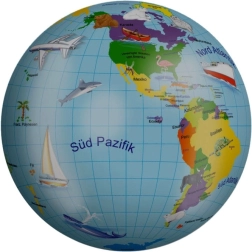 Praktiskā piepumpēšanas iespēja nodrošina, ka bumbu viegli uzturēsiet pareizā cietībā. Pietiek ar parastu velosipēda pumpi vai kompresoru (nav iekļauti komplektā). Pievilcīgais globusa motīvs rosina zinātkāri un padara bumbu par iemīļotu rotaļu biedru spēlēm ārā un ūdenī.
