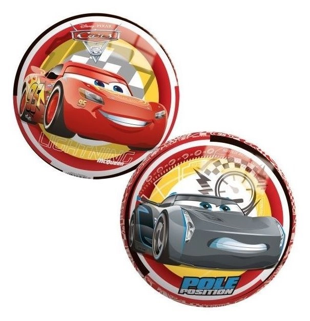 Bērnu bumba ar motīvu no filmas Disney PIXAR Mašīnas, diametrs 23 cm. Izgatavota no ūdensizturīga materiāla, piemērota spārdīšanai, mešanai un spēlēm baseinā. Viegli kopjama, nepieciešamības gadījumā var piepumpēt ar pumpi. Ražots ES.