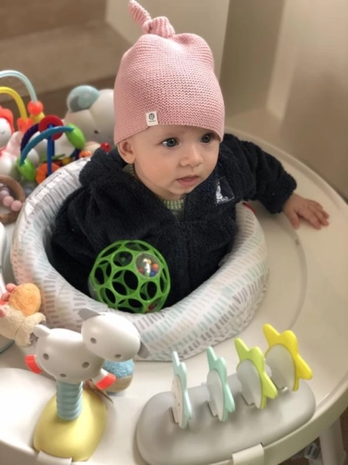 Droša, gluda un elastīga plastmasa ir saudzīga pret smaganām un pirkstiņiem. Bumbiņa ir praktiski neiznīcināma un ideāli piemērota ikdienas rotaļām mājās un ceļā. Minimalistisks dizains veicina dabisku mācīšanos – satveršanu, pārsvišanu, ripināšanu un pirmās koordinētās kustības.