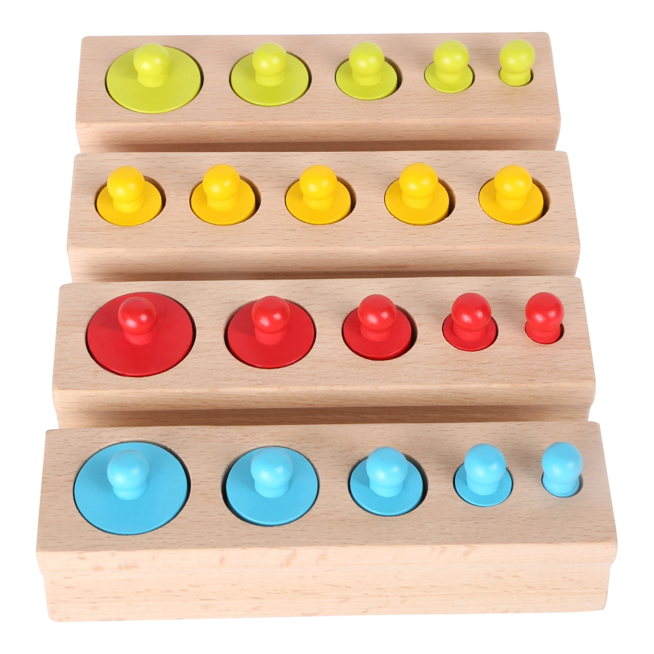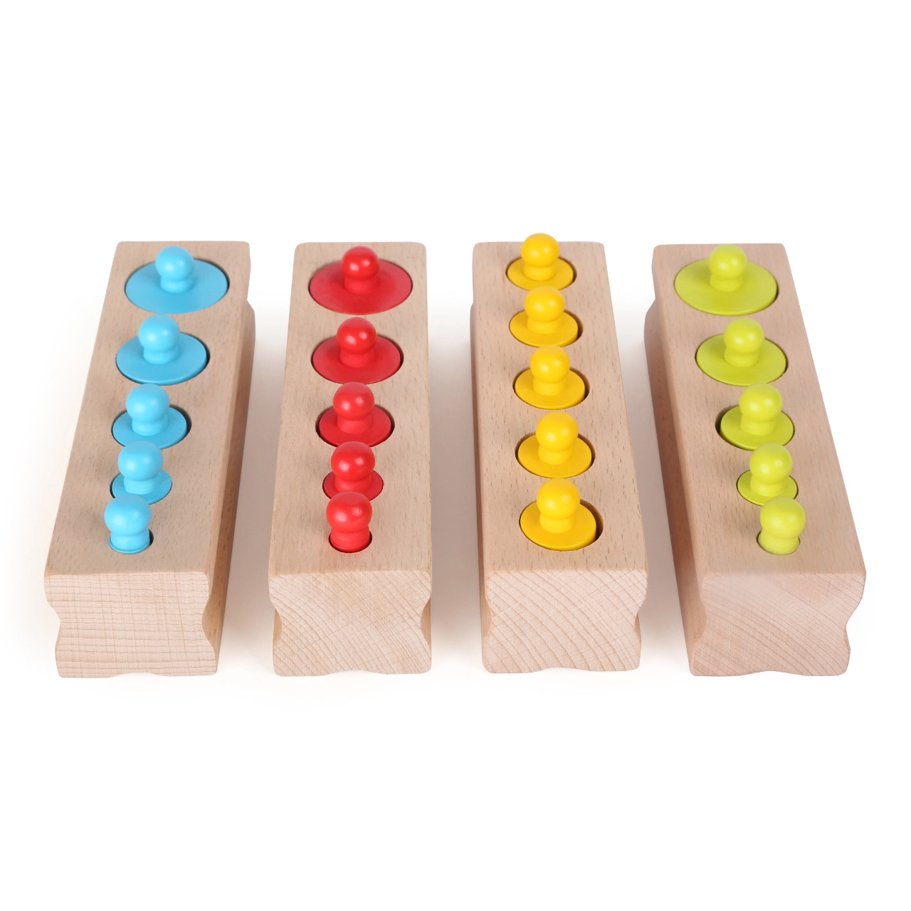 Koka krāsainie rullīši palīdz bērniem izprast paraugus un pieņemt lēmumus par pareizu izvietojumu.