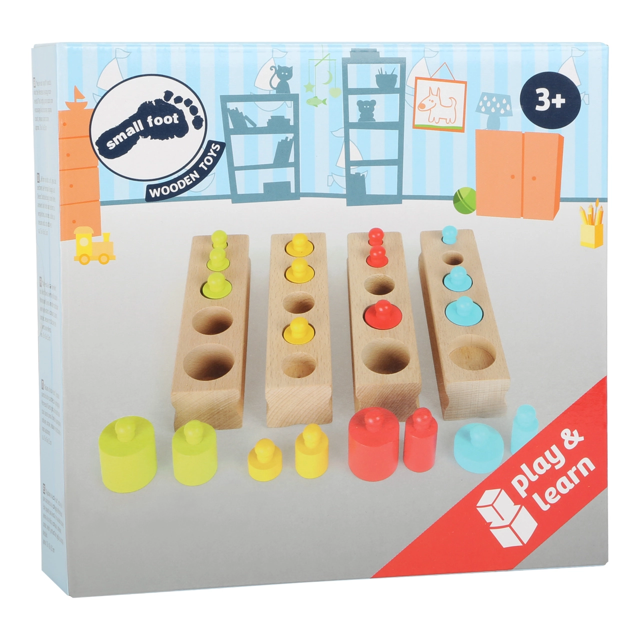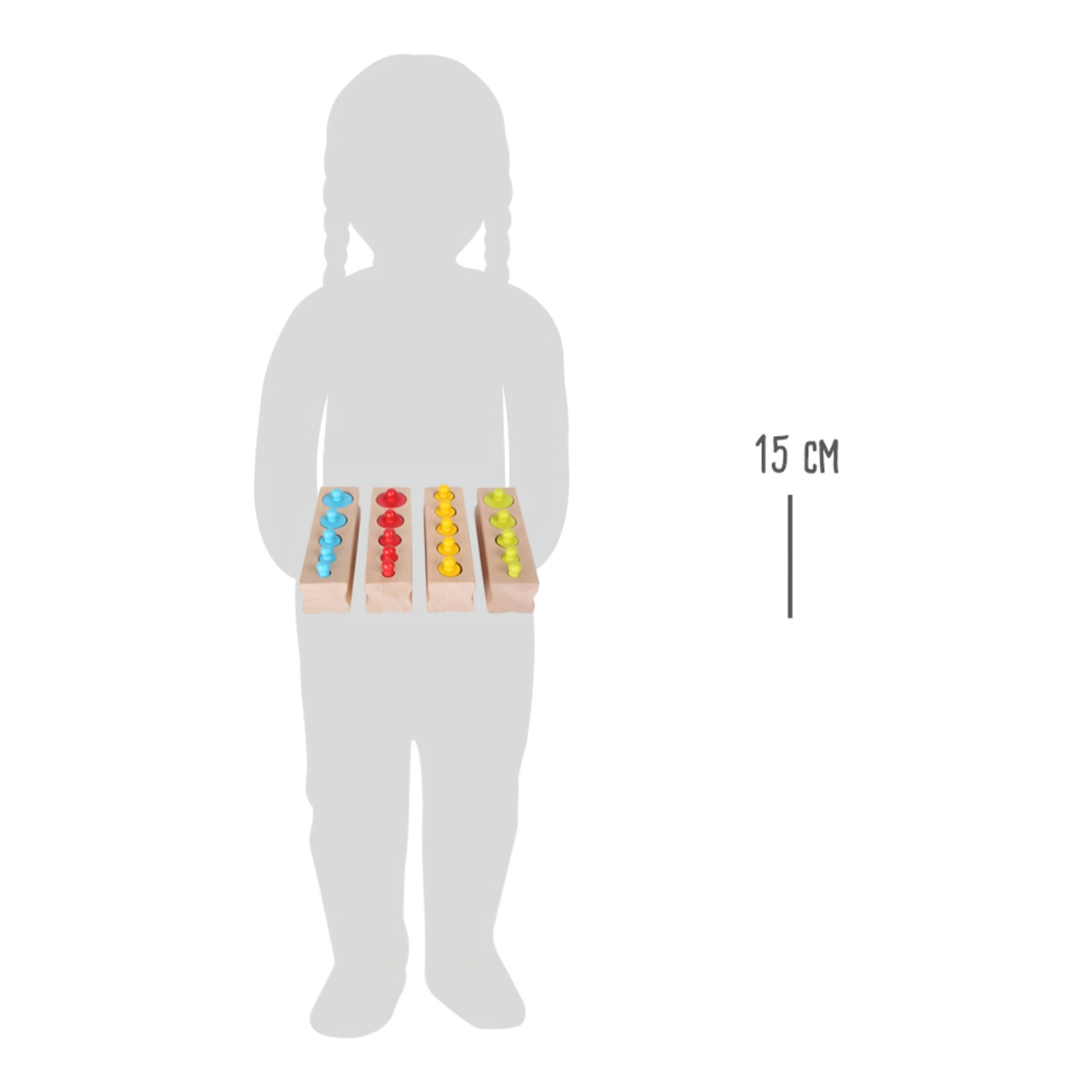 Small Foot krāsainā koka rullīšu puzle ir lielisks rīks bērnu sīkās motorikas un loģiskās domāšanas attīstīšanai. Šī košā spēle rosina bērnus salīdzināt, organizēt un strukturēt.