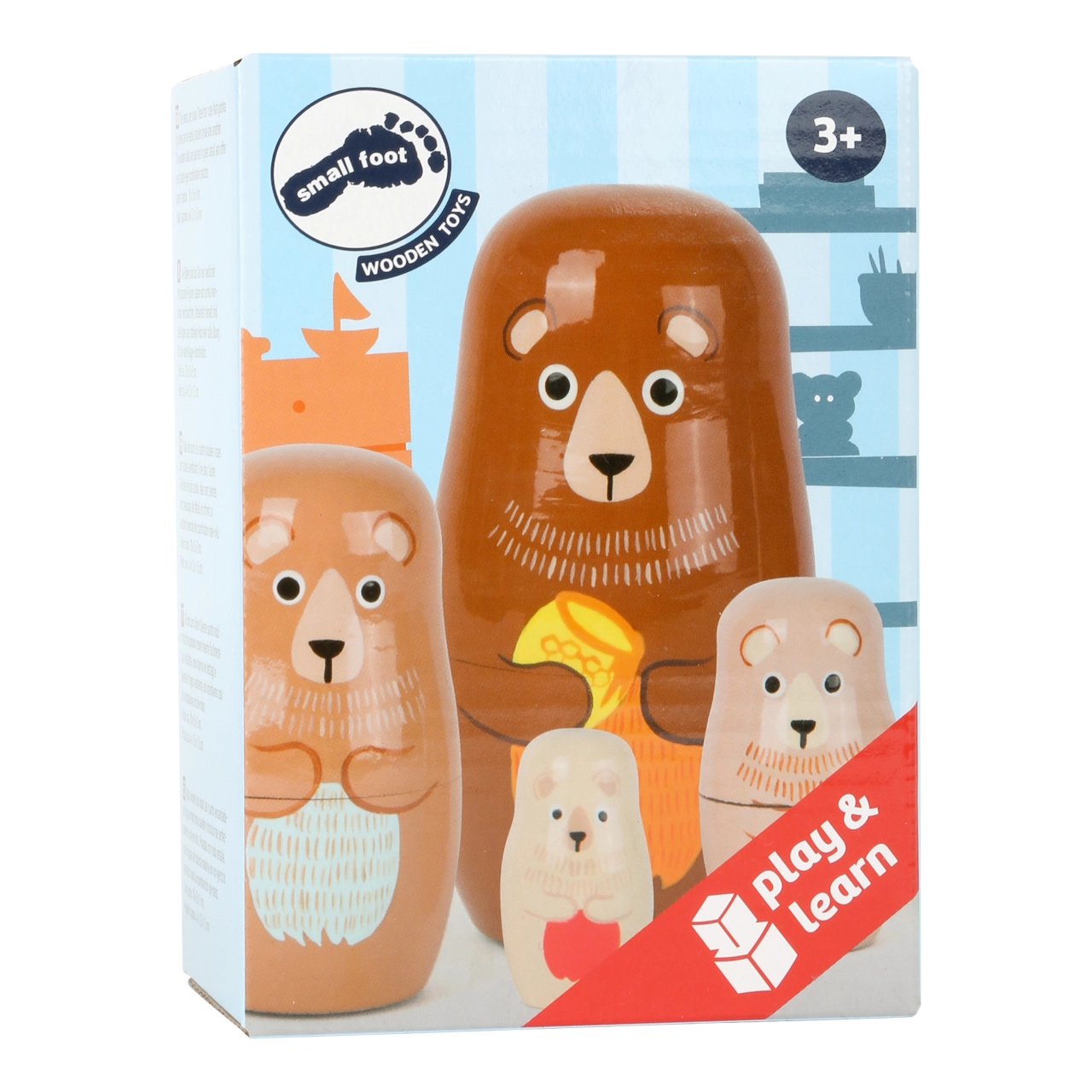 Šī klasiskā koka matrjoška attēlo lāču mammu ar lācēniem, kas pēc izmēra pakāpeniski paslēpjas cits citā. Bērni trenē pacietību, loģiku un veiklību, vienlaikus gūstot atklāšanas prieku par to, kas slēpjas iekšpusē.