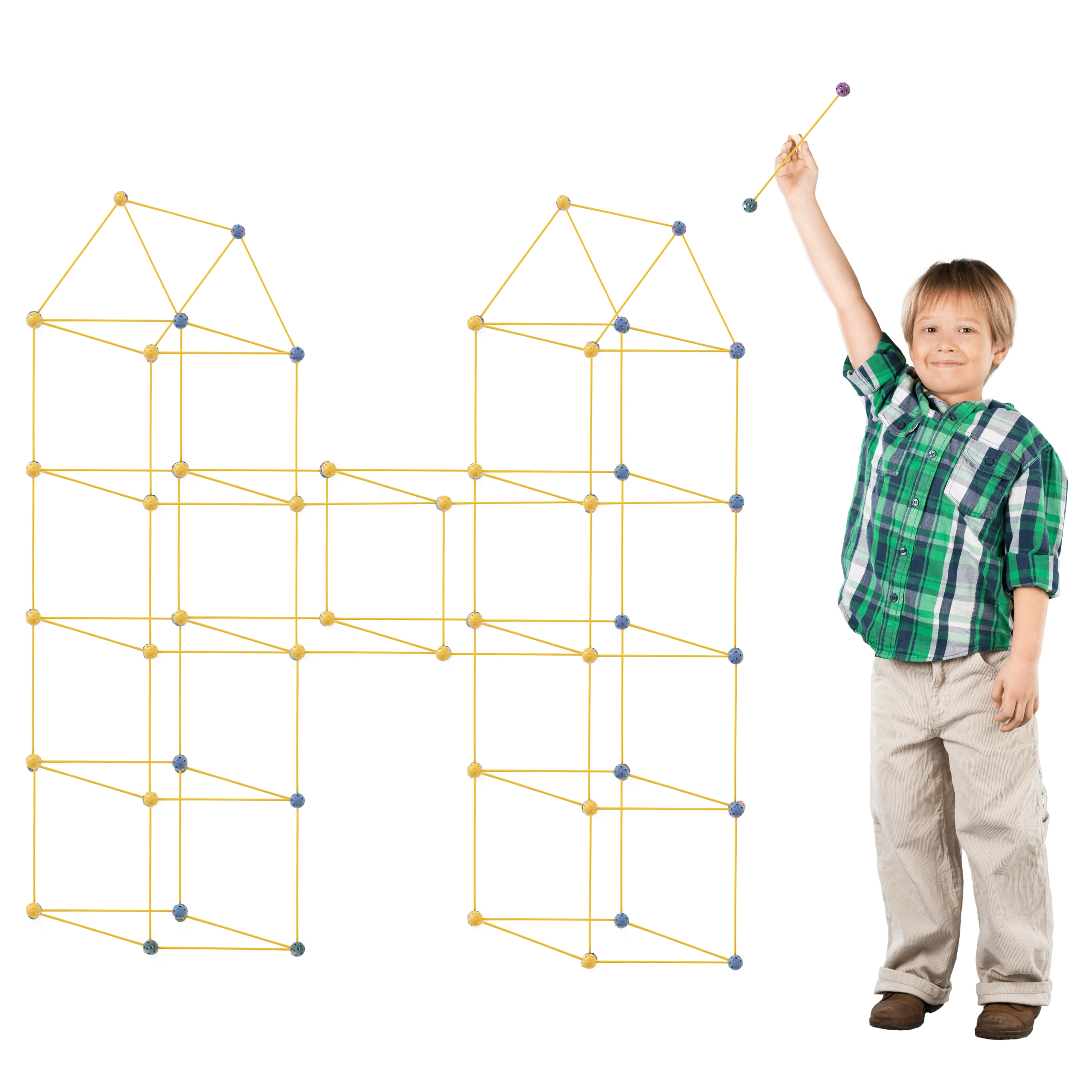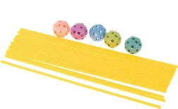 Atklājiet radošās būvēšanas burvību ar mūsu lielisko konstruktoru, kas ļauj bērniem veidot plašu struktūru klāstu, piemēram, teltis, bāzes vai pat suņu būdas! Komplektā ir 75 detaļas, tostarp 51 dzeltenais stienis un 24 dažādu krāsu savienojošās bumbiņas, kas nodrošina neierobežotas būvēšanas iespējas.