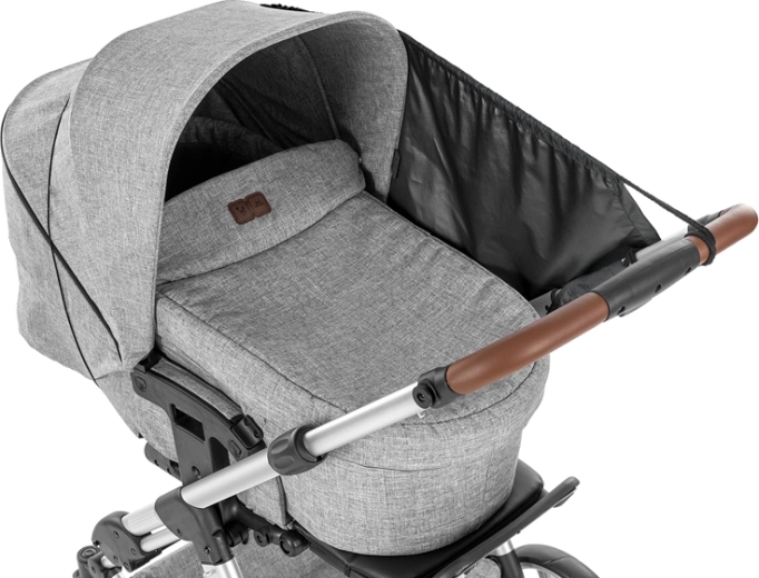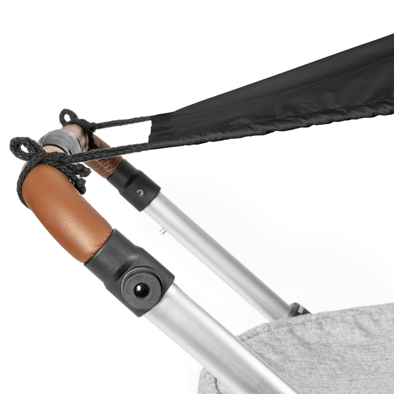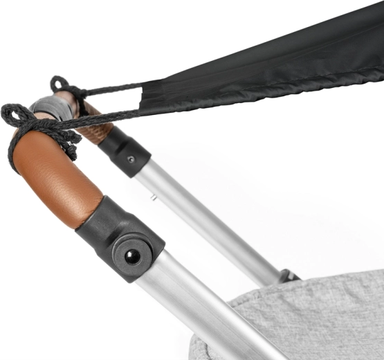 Pateicoties gudrai stiprināšanai, aizsegu viegli uzvilksiet pāri jumtiņam un piestiprināsiet pie roktura – neatkarīgi no tā, vai nepieciešama plaša ēna pusdienlaikā vai sānu pārklājums no rīta un vakarā. Elastīgā gumija un stiprināšanas auklas notur aizsegu stabili arī vējā vai nelīdzenā reljefā. Kad to nevajag, vienkārši savelciet to kā rullo aizkaru, bez nepieciešamības to noņemt no ratiem.