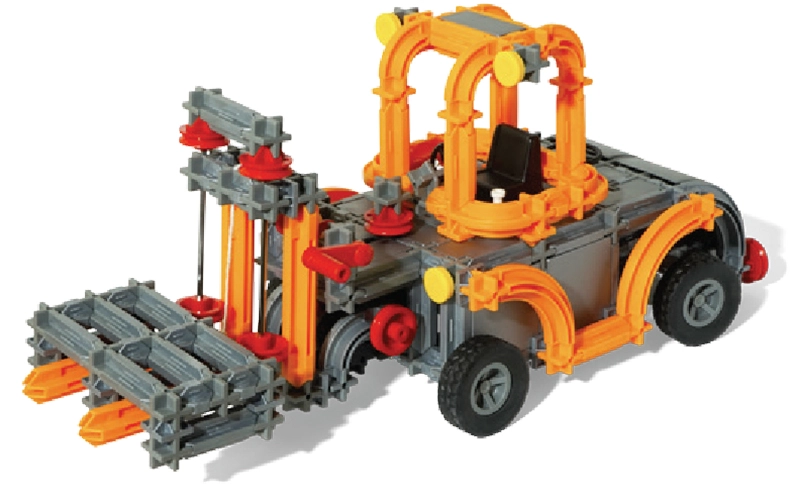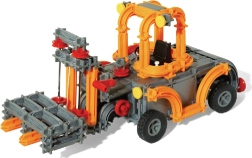 Salieciet iemīļoto iekrāvēju ar dakšām. Dakšas viegli paceļ “paleti”, izlices daļu var pagriezt, bet ar rokturīti un aukliņu (nav iekļauta komplektā) iespējams simulēt kravas nolaišanu un pacelšanu.