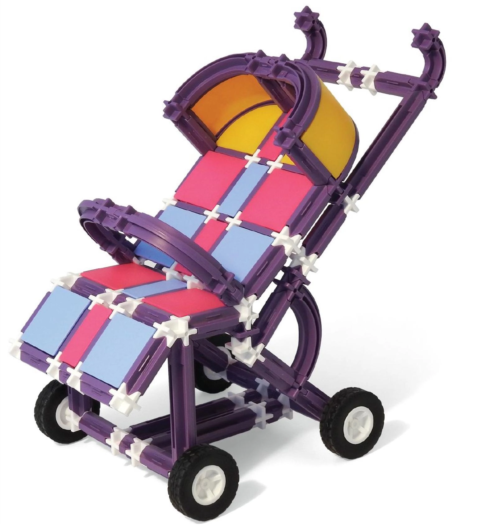 Atklājiet radošo konstruktoru SEVA Ģimene – pastaiga ar 166 detaļām skaistās violetās, rozā un gaiši zilās nokrāsās. Bērni no 4 gadu vecuma var salikt bērnu ratiņus, šūpoles, soliņu un citus parka elementus – viss fantāzijas, sīkās motorikas un kreativitātes attīstīšanai.