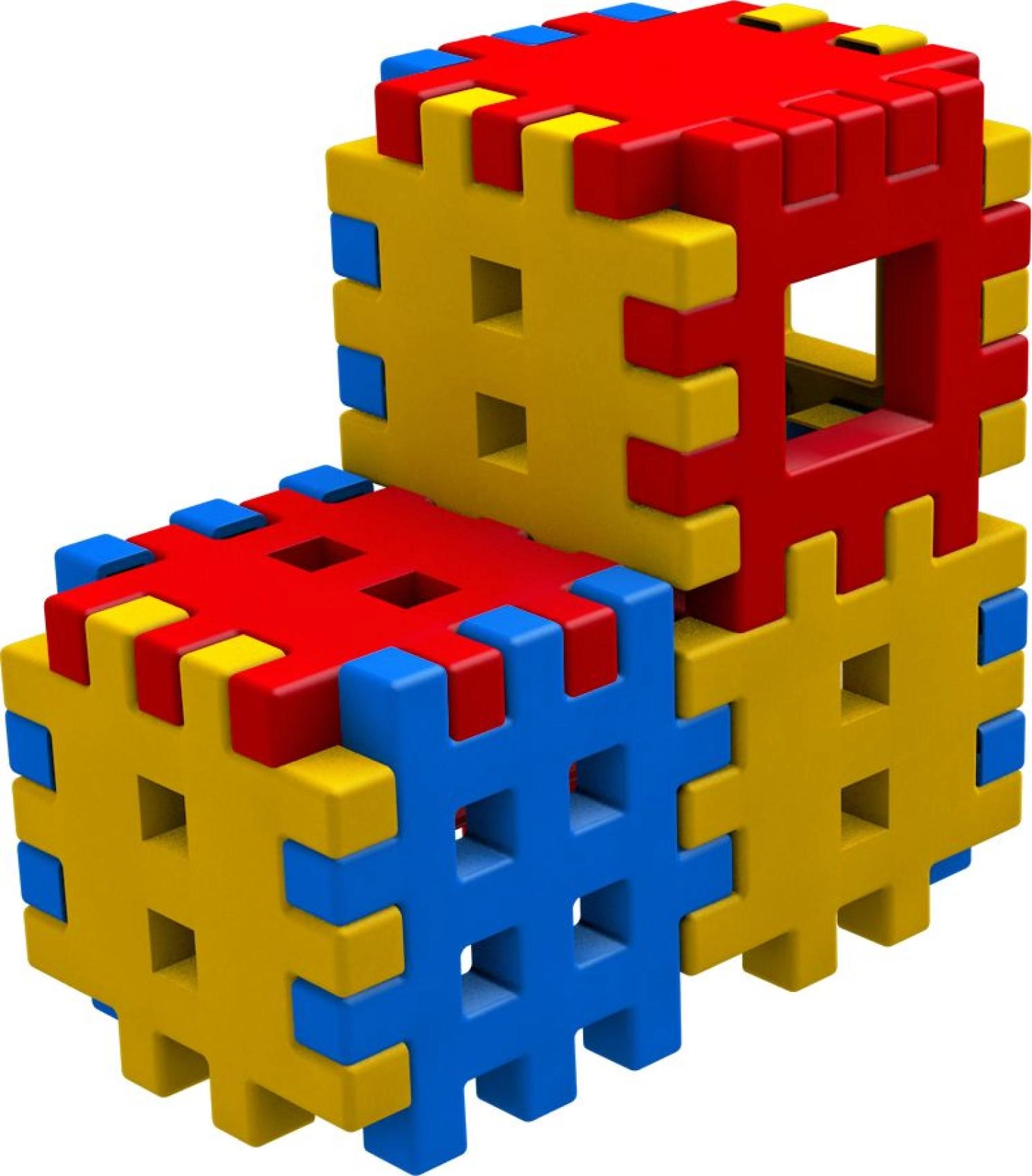 Zobainās malas un režģveida virsmas nodrošina stingru detaļu savienojumu un ļauj būvēt vienkāršas 3D formas, klucīšus un torņus.