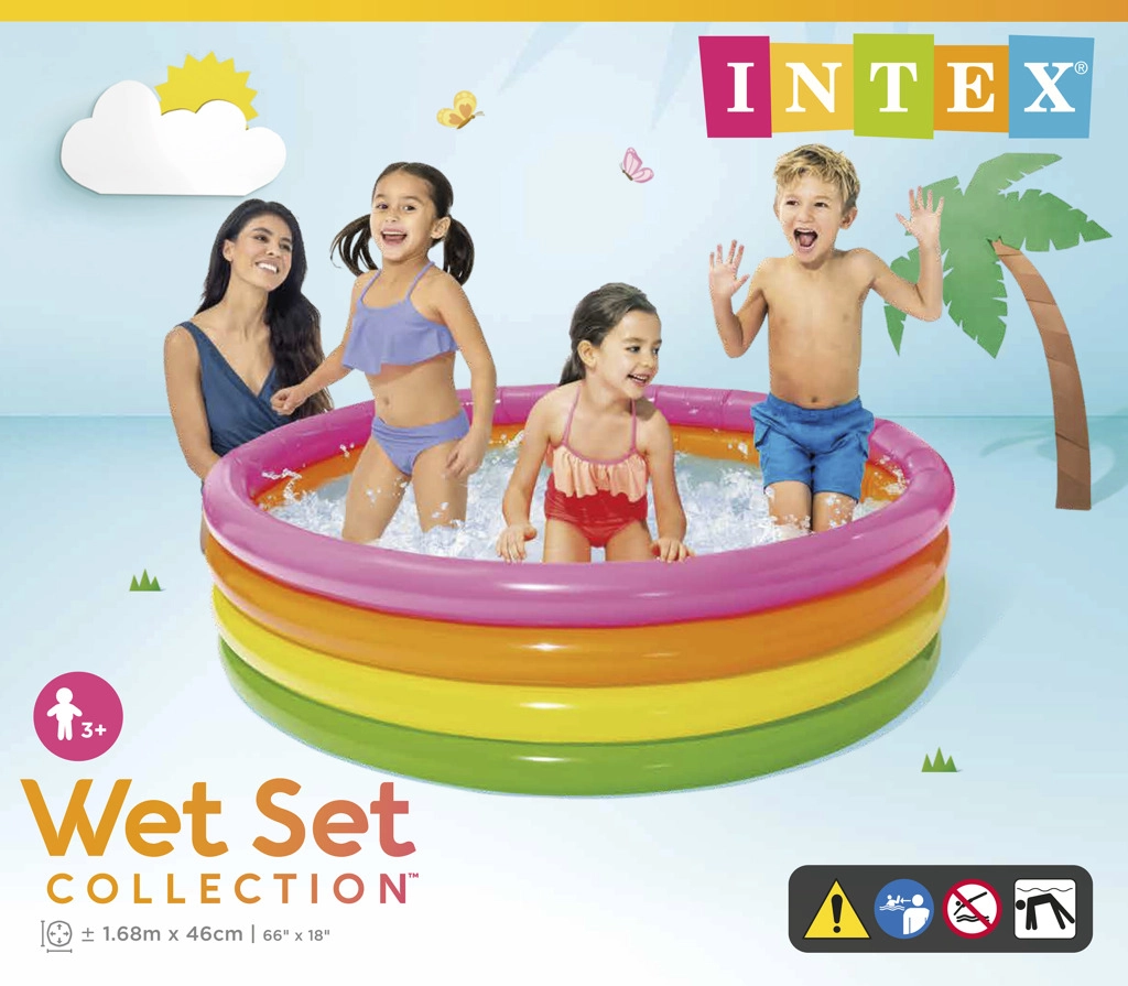 Izbaudiet vasaru ar šo četrkrāsu piepūšamo bērnu baseinu INTEX ar izmēriem 168 × 46 cm. Pateicoties četriem stabilajiem gredzeniem, tas ir izturīgs un ērts, sagatavojams piepildīšanai 10 minūšu laikā. Ideāli piemērots mazākiem dārziem, piedāvā atsvaidzinājumu un daudz jautrības bērniem ar tilpumu 780 l.